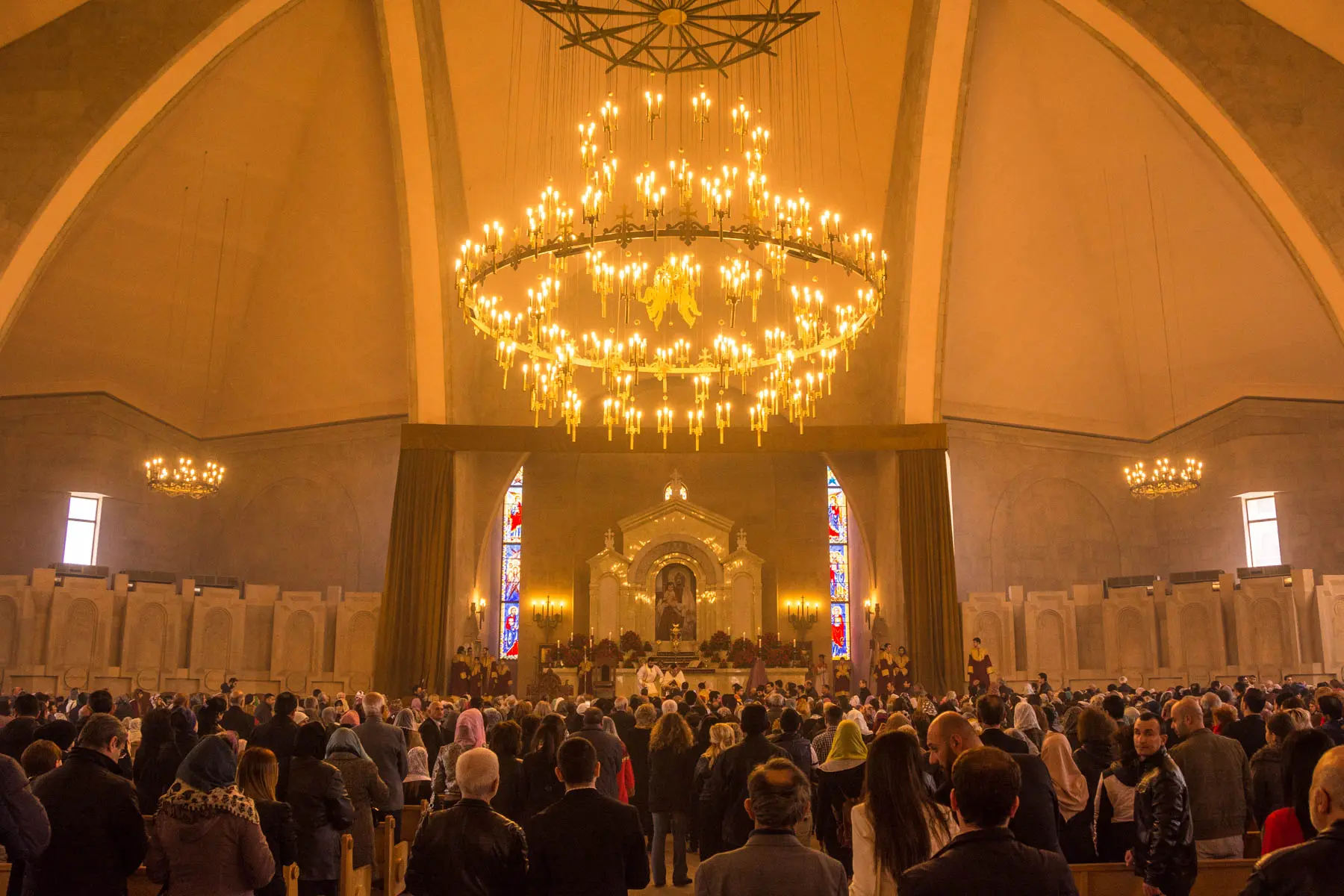 The air was thick with burning incense and whispered conversations, punctuated by beams of sunlight from above, the occasional flash of a camera, a selfie stick that strayed too far. Hundreds, maybe thousands, of people were facing forwards, looking towards a sight they couldn’t see, an homage to God hidden behind a heavy velvet curtain. Welcome to Easter in Armenia.