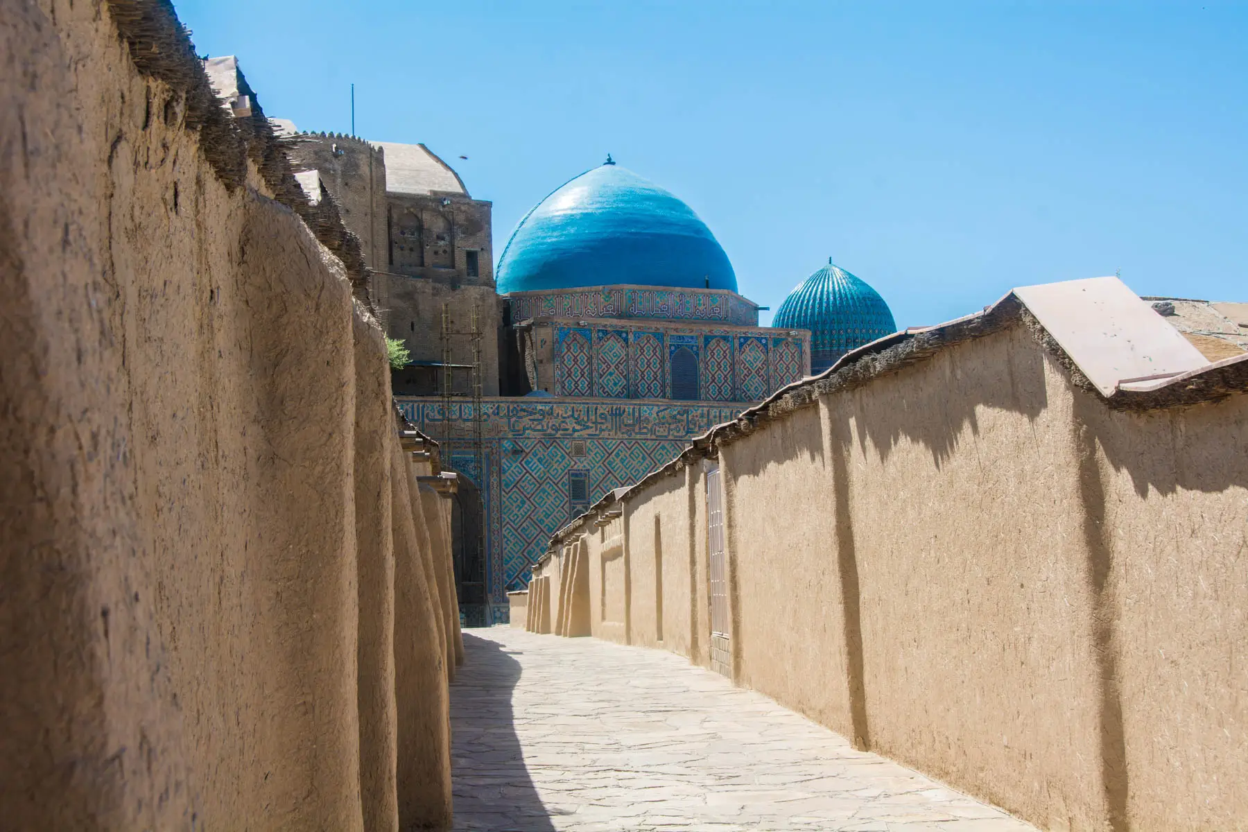 At the station, you’ll find several marshrutky going to Turkestan. Just ask around. They cost 600/800 (non-AC/AC) tenge per person. It takes about two hours to get to Turkestan, and they leave when full. If you speak some Russian or Kazakh, the driver will be happy to drop you off near the mausoleum. If not, a taxi to the mausoleum costs around 400 tenge from the bus station in Turkestan.