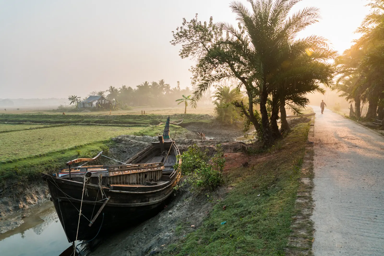 Travel guide to Nijhum Dwip, Bangladesh - Girl walking at sunrise in front of boats - Lost With Purpose travel blog