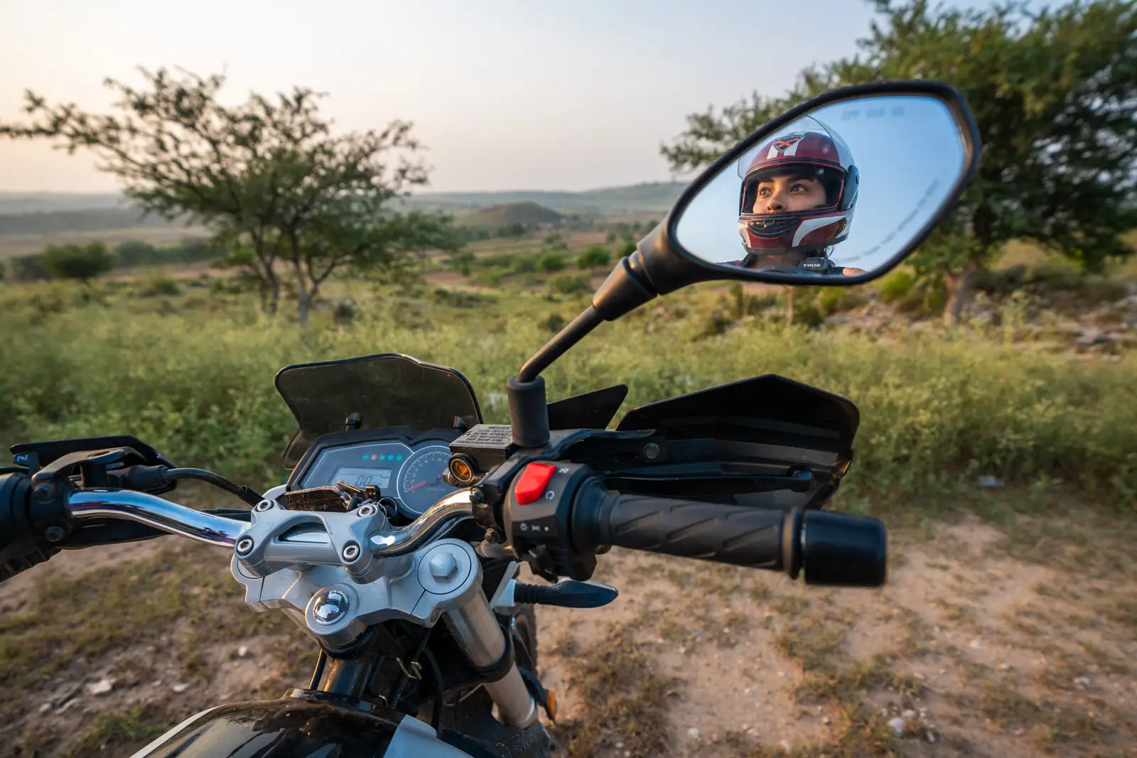 Learning to motorbike as a woman in Pakistan - Alex on a motorbike during sunset in Punjab - Lost With Purpose travel blog